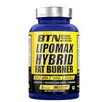 BTN Lipomax Hybrid Fat Burner Caps | Garcinia Cambogia Extract-250mg, Green Tea Extract-180mg, Grape Seed Extract-20mg, Piper Nigrum Extract-5mg | 90's | Bottle |